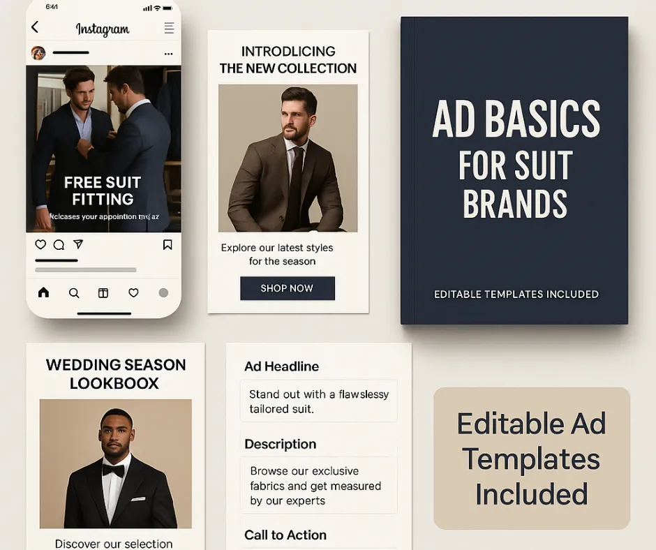 This eBook is designed for suit brand owners, tailors, or menswear entrepreneurs who want to grow their business using paid ads — even if you’ve never run one before. Whether you sell bespoke suits, ready-to-wear, or wedding collections, this guide will help you attract more clients online.